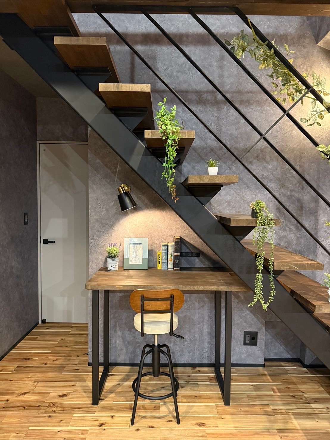階段下に大きめのデスクを設置すれば、